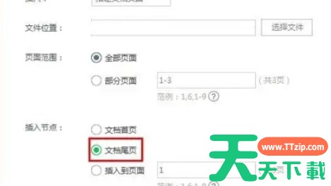 如果想要将第二个文档放在第一个文档的末尾,可以勾选“文档尾页”选项。