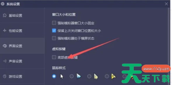 在界面设置窗口中,您会看到多个选项。请找到“底部虚拟按键”这个选项,并将其勾选上。这样,模拟器的底部就会显示虚拟按键了。