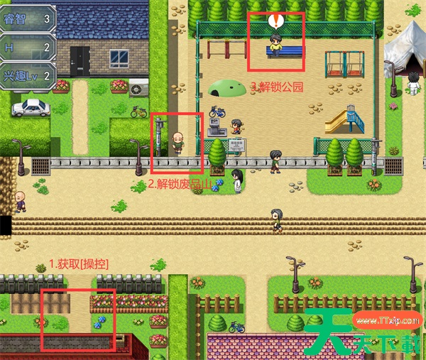 3.对话后并赢下跑步比赛后解锁地点:[公园] 这里要用学校拿到的[脚]还有[操控]去合成[脚力增幅鞋]才能跑赢。