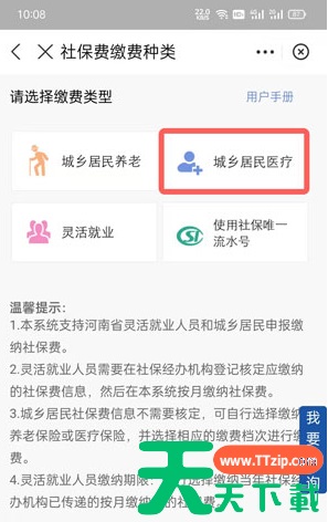 4、选择需要缴费的类型为【城乡居民医疗】服务,点击进入交医保;