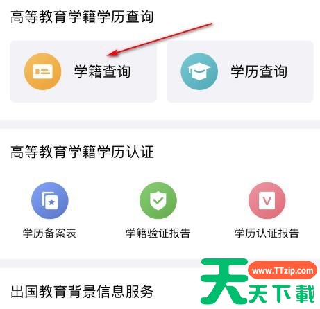 然后,我们在【首页】界面,点击下【学籍查询】文字。