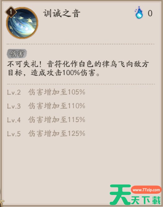 不可失礼!音符化作白色的律鸟飞向敌方目标,造成攻击100%伤害。