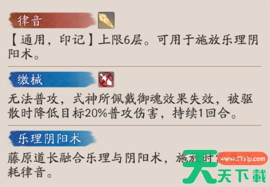 藤原道长融合乐理与阴阳术,施放时需要消耗律音。