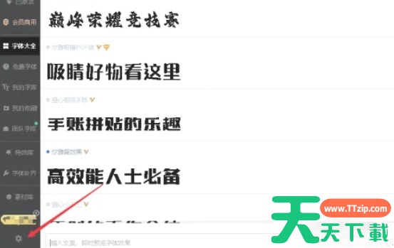 在iFonts字体助手的界面左下角,找到一个齿轮形状的图标按钮,点击它。