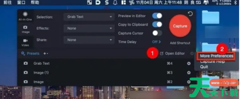 snagit是便捷实用的截图工具,那么snagit怎么设置快捷键?snagit设置快捷键的方法?下面就让天天下载Ttzip给大家解答下吧! snagit怎么设置快捷键? 1、打开snagit软件,点击菜单上大写字母S。 2、然后在跳出的页面中选择open edit,然后再选择more 。 3、选择你想要更改的快捷键,然后按下键盘上的新组合键来分配新的快捷键即可。 以上就是天天下载Ttzip为您整理的snagit怎么设置快捷键?snagit设置快捷键的方法啦,希望能帮到您。 除特别注明外,本站所有文章均为 天天下载 原创,转载请注明出处来自 https://www.ttzip.com/210258.html