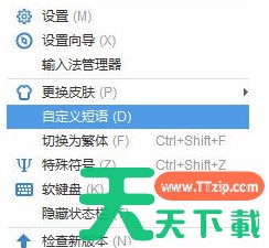 2、点击“自定义短语设置”或者更简单的方式,你也可以右键单击菜单,直接选择自定义短语来设置。