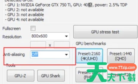 在furmark的主界面中,找到“Anti-aliasing”选项。将“Anti-aliasing”设置为“Off”,以关闭抗锯齿功能。这一步是为了减少测试过程中的图形处理负担,使测试结果更加准确。
