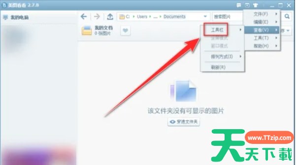 在“工具栏”菜单中,找到“状态栏”选项,并取消其勾选状态。这样做将隐藏美图看看窗口底部的状态栏。
