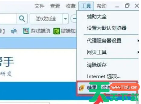 1、在糖果浏览器的主界面中,点击右上角的“工具”选项,在下拉菜单中,选择并点击“糖果游戏浏览器选项”以进入浏览器的详细设置界面。