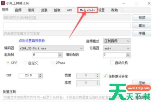 在打开的小丸工具箱界面中,找到并点击上方的“MediaInfo”选项。这个选项通常用于查看媒体文件的详细信息。