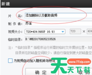 打开”爱剪辑“,设置一个片名,然后点击下方的”确定“。