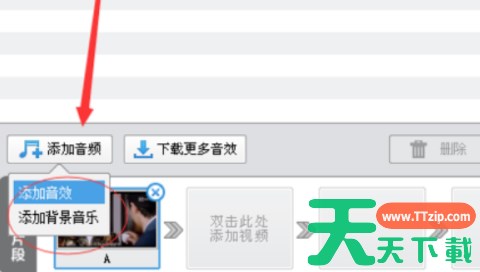 之后找到音频面板,点击”添加音频“,可以选择”添加音效“和”添加背景音乐“。