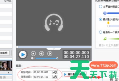 设置截取背景音乐的“开始时间”和“结束时间”,最后点击”确定“即可。