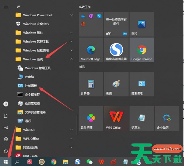 1、点击电脑任务栏底部左下角的【开始菜单】按钮,然后找到【Windows系统】选项中的【控制面板】功能,并点击进入。