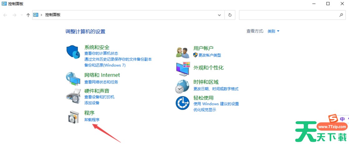 2、进入到电脑的控制面板界面当中后,找到【程序】选项下的【卸载程序】选项,并点击它。