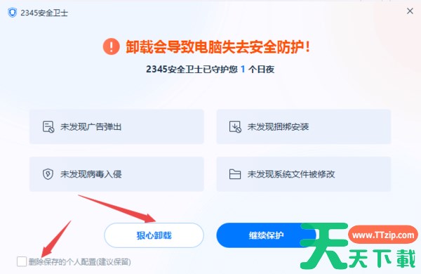 5、然后我们可以勾选【删除保存的个人配置】选项,当然也可以不勾选,然后点击【狠心卸载】按钮,最后等待软件卸载完成即可。