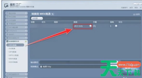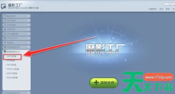 在魔影工厂的主界面中,首先点击左侧的“mkv高清”或其他你想要转换的目标视频格式。