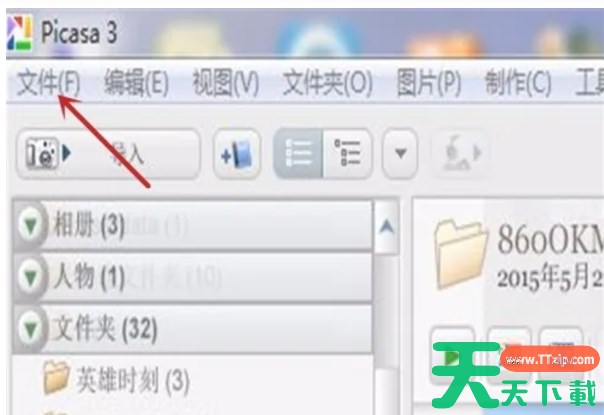 点击picasa软件左上角的“文件”按钮,这将打开一个下拉菜单。