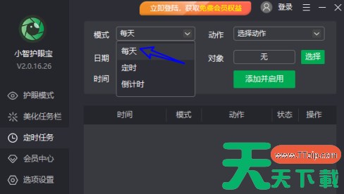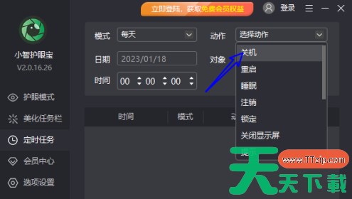 小智护眼宝是一款多功能护眼软件,可根据昼夜规律开启不同的护眼模式来保护你的眼睛。以下,天天下载Ttzip将一步一步地为你解释如何在小智护眼宝中添加每天定时关机任务。通过设置定时关机任务,你可以让小智护眼宝在你设置的时间自动关闭计算机,帮助你减少屏幕时间,保护你的眼睛健康。