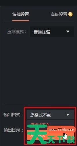 4、点击设置好压缩模式之后,然后找到输出格式这个选项,可以选择压缩之后的输出保存格式,如下图中所示。