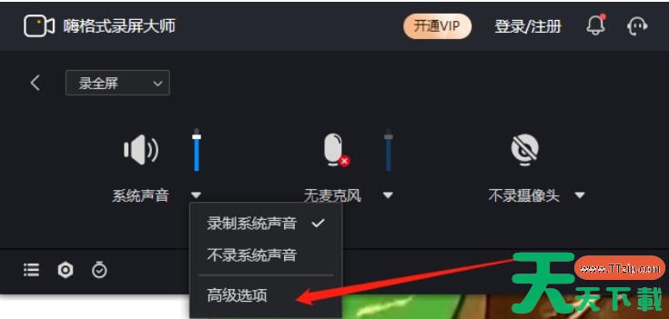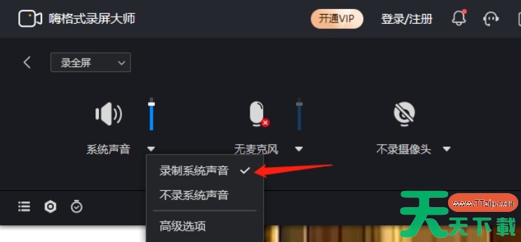 2.接着在打开的页面中,将【系统声音】按钮点击打开,然后选择【录制系统声音】,如图所示。