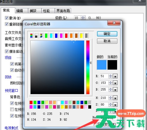 在打开的参数选择窗口中,我们会看到有一个预览窗口——背景色。