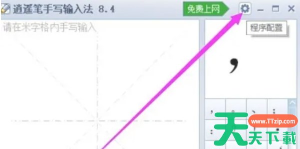 在打开的逍遥笔手写输入法软件窗口中,找到并点击【程序配置】图标。这将打开软件的配置窗口,允许您进行各种个性化设置。