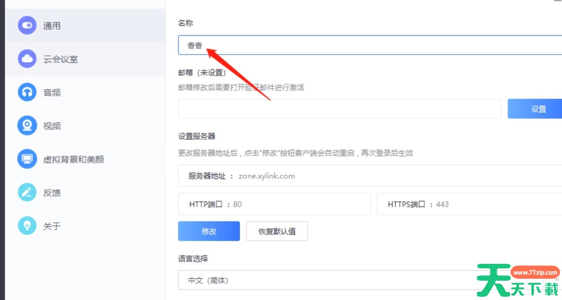 2.之后在设置页面中,在【名称】的框中就会看到自己原来的一个名字,如图所示。