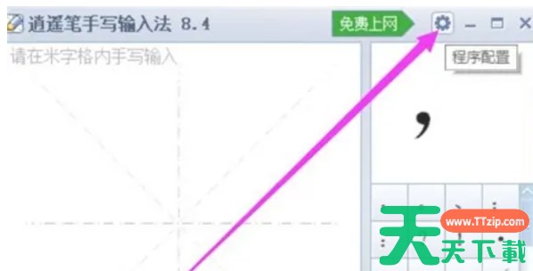 在软件窗口的右上角,找到并点击【程序配置】图标。这将打开逍遥笔手写输入法的配置窗口。