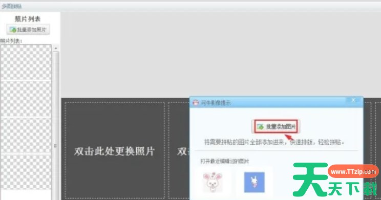 在多图拼贴界面中,点击左上角的“批量添加照片”按钮。