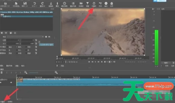 点击工具栏中的“关键帧”按钮,或者点击界面左下角的“关键帧”标签按钮,以切换到关键帧编辑模式。此时,在视频轨道上方会出现一条关键帧编辑线。