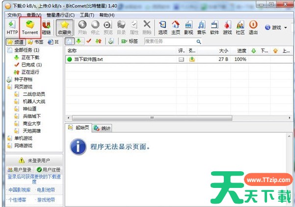 1.将电脑里的种子文件(.torrent)文件拖到软件窗口或者点击左上角的Torrent按钮,然后选择要下载的种子文件即可。