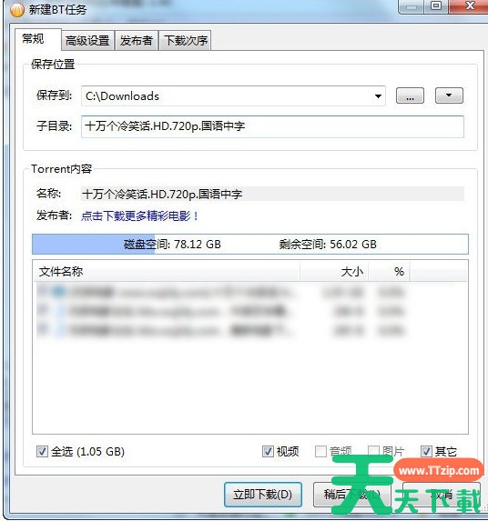 2.选择后出现种子的文件列表,选择要下载的文件,点击立即下载就可以下载了。