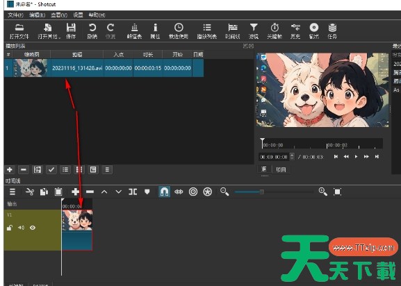 然后,从播放列表中拖拽视频素材到下方的视频轨道上。