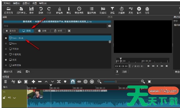 在滤镜窗口中,点击【视频】选项卡。滑动选项,找到并点击【text:rich】选项(或者【文字:简单】选项,根据软件版本和个人喜好选择)。