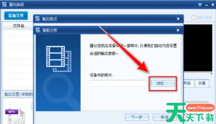 在“分析结果”窗口中,暴风转码会自动分析所选视频文件的参数,并配置合适的屏幕分辨率、码率等。