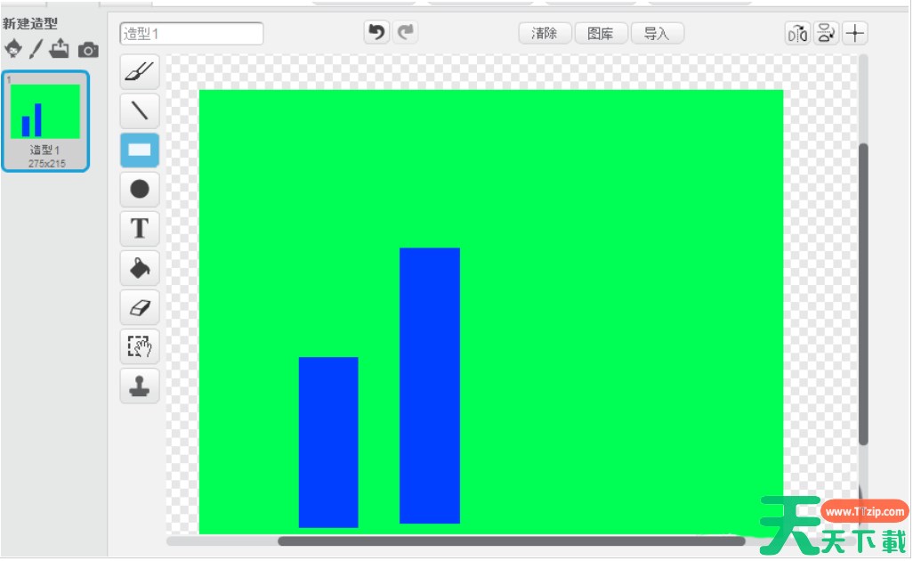 3、利用我们的绘图界面绘制出一个简单地背景,可以将背景画的比较长一些,因为后期都是可以设置角色大小的,这样背景运动起来不至于漏出后面的空白部分。
