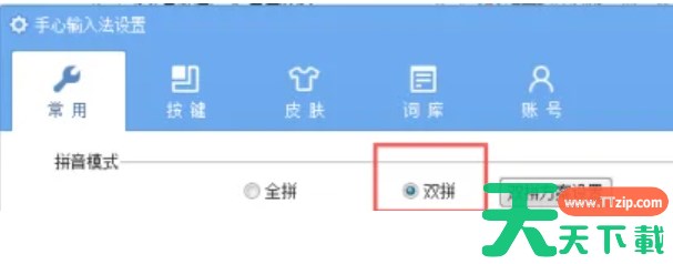 手心输入法是一款由北京欣乐道科技有限公司打造的输入法软件,那么手心输入法怎么设置双拼?手心输入法设置双拼的方法?下面就让天天下载Ttzip给大家解答下吧! 手心输入法怎么设置双拼? 1、单击手心输入法图标右侧的工具箱图标,然后选择“设置”。 2、然后在常用页面中,找到“双拼”选项,并将其勾选或选择为当前输入模式。 3、在双拼设置页面中,可以看到多种双拼方案供选择。用户可以根据自己的喜好和习惯,选择一个合适的方案即可。 以上就是天天下载Ttzip为您整理的手心输入法怎么设置双拼?手心输入法设置双拼的方法啦,希望能帮到您。 除特别注明外,本站所有文章均为 天天下载 原创,转载请注明出处来自 https://www.ttzip.com/210605.html