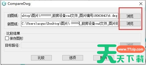 4、分别点击浏览选择旧图纸和新图纸。