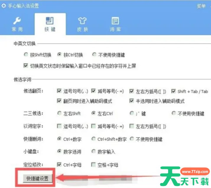 手心输入法是一款纯净的输入法工具,里面有多种皮肤的键盘可以选,那么手心输入法怎么隐藏状态栏?手心输入法隐藏状态栏的方法?下面就让天天下载Ttzip给大家解答下吧! 手心输入法怎么隐藏状态栏? 1、单击手心输入法图标右侧的工具箱图标,然后选择“设置”。 2、在按键页面选择“快捷键设置”按钮。 3、然后勾选“显示/隐藏状态栏”选项,设置一个自己熟悉的快捷键,然后按下“确定”按钮即可。 以上就是天天下载Ttzip为您整理的手心输入法怎么隐藏状态栏?手心输入法隐藏状态栏的方法啦,希望能帮到您。 除特别注明外,本站所有文章均为 天天下载 原创,转载请注明出处来自 https://www.ttzip.com/210608.html