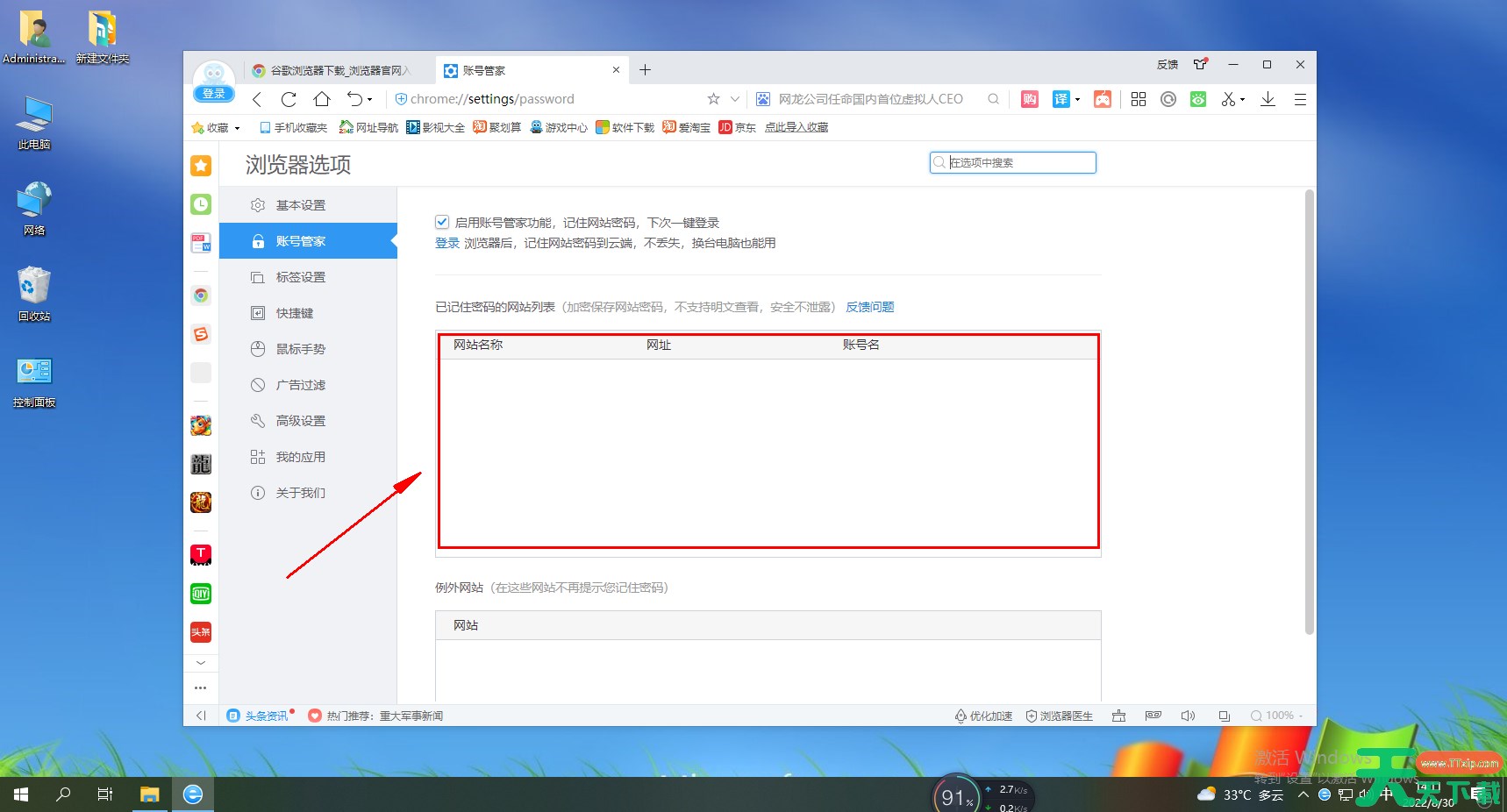 4、进入账号管家页面后,在页面右侧可以看到“已记住密码的网站”这一栏,在其中找到需要删除的账号密码记录并将其删除就可以了。