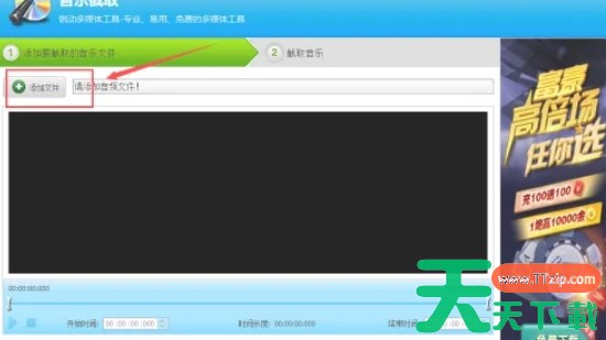 进入音乐截取界面后,你会看到一个“添加文件”的按钮。点击“添加文件”按钮,然后在弹出的文件选择对话框中,浏览并选择你想要截取的音频文件。选择好文件后,点击“打开”按钮,将音频文件添加到软件工具中。