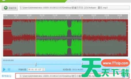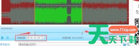 在音乐截取界面中,你会看到音频文件的波形图以及开始时间和结束时间的设置框。通过调节开始时间和结束时间的设置框,你可以指定你想要截取的音频片段的起始和结束位置。你也可以通过鼠标左键拖拉界面上的标记(如蝴蝶结或其他形式的标记)来更直观地设置截取的开始和结束时间。