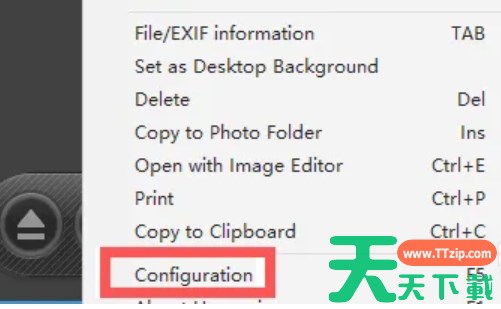 1、进入设置界面:在软件窗口中,右键点击任意位置,会弹出一个菜单。在这个菜单中,找到并点击“configuration”(配置)选项。