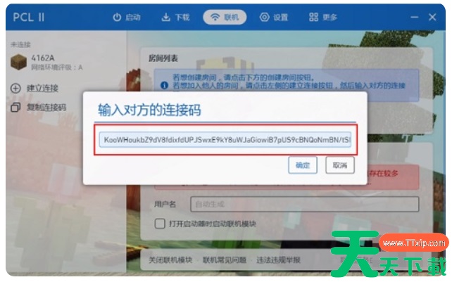 2、将收到的连接码复制粘贴进去,点击确定。