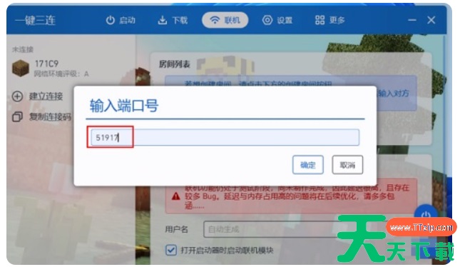 3、填入端口号并设置房间名,即可创建联机房间。