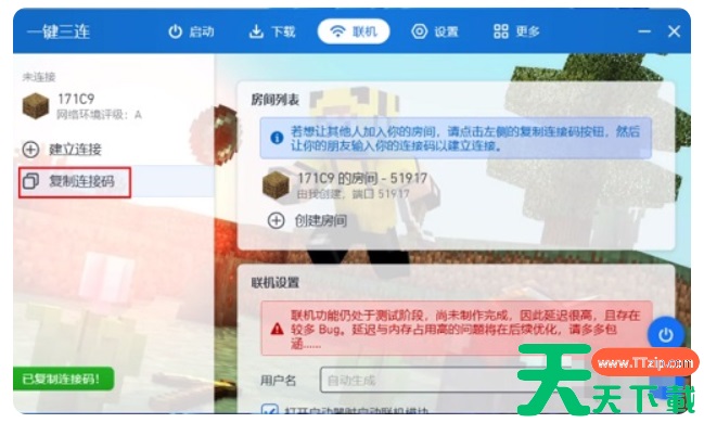 4、点击左侧的【复制连接码】,将码发送给好友。