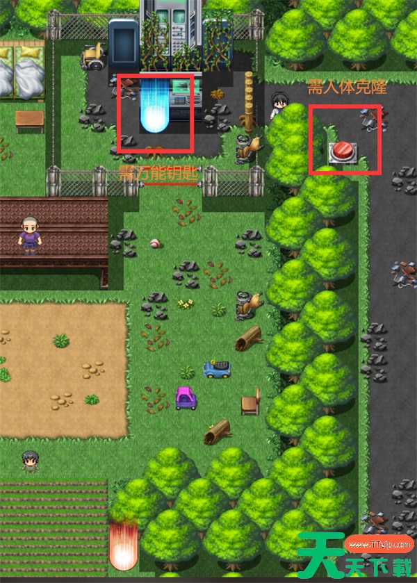 [存在感]-村庄-左侧尽头跳过悬崖需要[人体克隆]的按钮