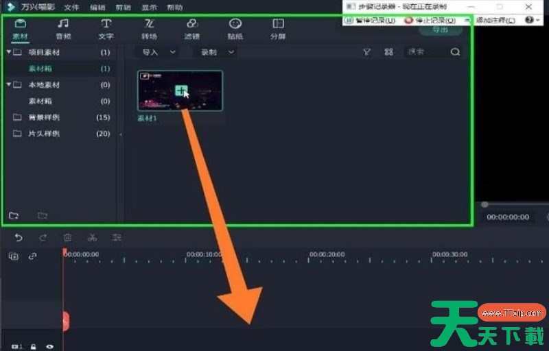 第一步:在电脑上打开万兴喵影软件,导入素材,并添加到轨道上。