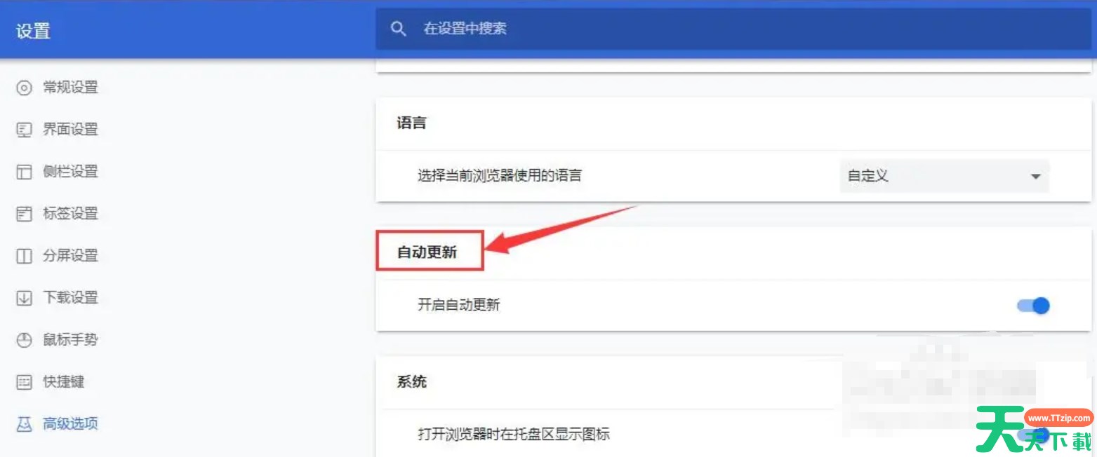 小白浏览器是一款好用的急速浏览器、并支持智能加速、无痕搜索访问,那么小白浏览器怎么关闭自动更新?小白浏览器关闭自动更新的方法?下面就让天天下载Ttzip给大家解答下吧! 小白浏览器怎么关闭自动更新? 1、点击小白浏览器右上角的”三条杠“图标,然后选择设置。 2、选择“高级选项”。 3、在“高级选项”中,找到“自动更新”设置。 4、取消勾选“自动更新”的勾选框即可。 以上就是天天下载Ttzip为您整理的小白浏览器怎么关闭自动更新?小白浏览器关闭自动更新的方法啦,希望能帮到您。 除特别注明外,本站所有文章均为 天天下载 原创,转载请注明出处来自 https://www.ttzip.com/210726.html